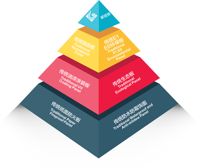 - “家倍安”使用高阻隔金屬鋁箔和高滲、超耐磨納米材料,經(jīng)過高溫高壓獨(dú)特的工藝方法處理,飾面木質(zhì)纖維結(jié)構(gòu)更加縝密,隔音、降噪,導(dǎo)熱系數(shù)低,防火等級高,達(dá)到國家防火材料防火標(biāo)準(zhǔn)A2級。